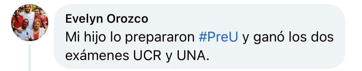 Mi hijo lo prepararon #PreU y ganó los dos exámenes UCR y UNA.